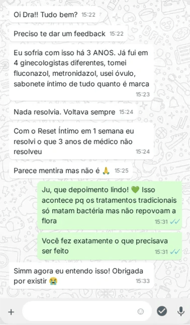 "Eu criei o Reset Íntimo porque eu vi mulheres destruindo a própria flora sem saber. Eu precisava fazer algo."